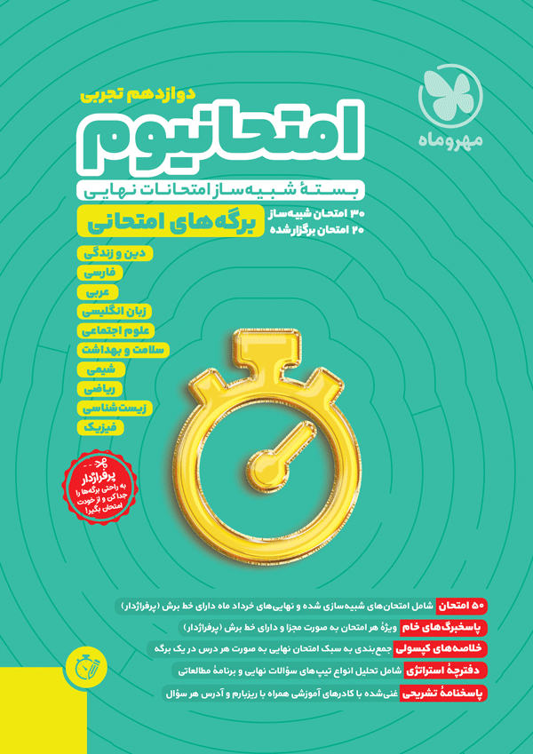 50امتحان شامل امتحان های شبیه سازی شده و نهایی های خرداد ماه دارای خط برش (پرفراژدار)